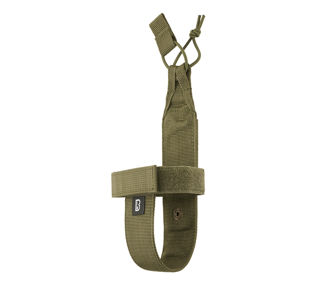 Universal bottle holder / durable 600D polyester material / PALS attachment loops for Molle systems / can also be worn on simple belts / 1 horizontal fixation strap with hook and loop fastener / diameter bottle min:18 cm, max: 32 cm / ideal for work, leisure and sports