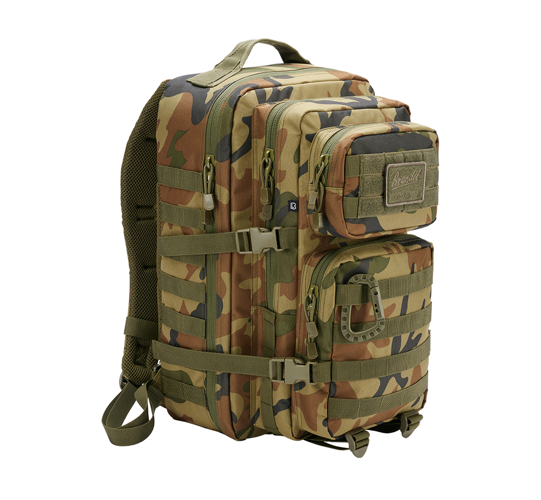 Molle system / padded shoulder straps / D-rings / side compression straps / mesh drink compartments / Velcro surface with patch / flag label / individually adjustable chest and hip strap / carrying handle / incl. carabiner / practical quick-release fasteners / 600DEN polyester material