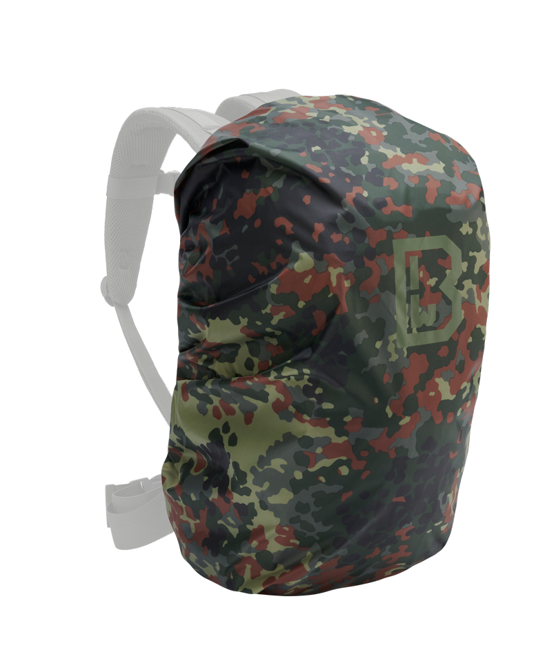 light, robust polyester material with coating / protection against rain and dirt / can also be used for camouflage / optimized fit for the US Cooper medium backpacks / can also be used for other fits / up to approx. 30 liters / elastic rubber band / discreet brandit signet